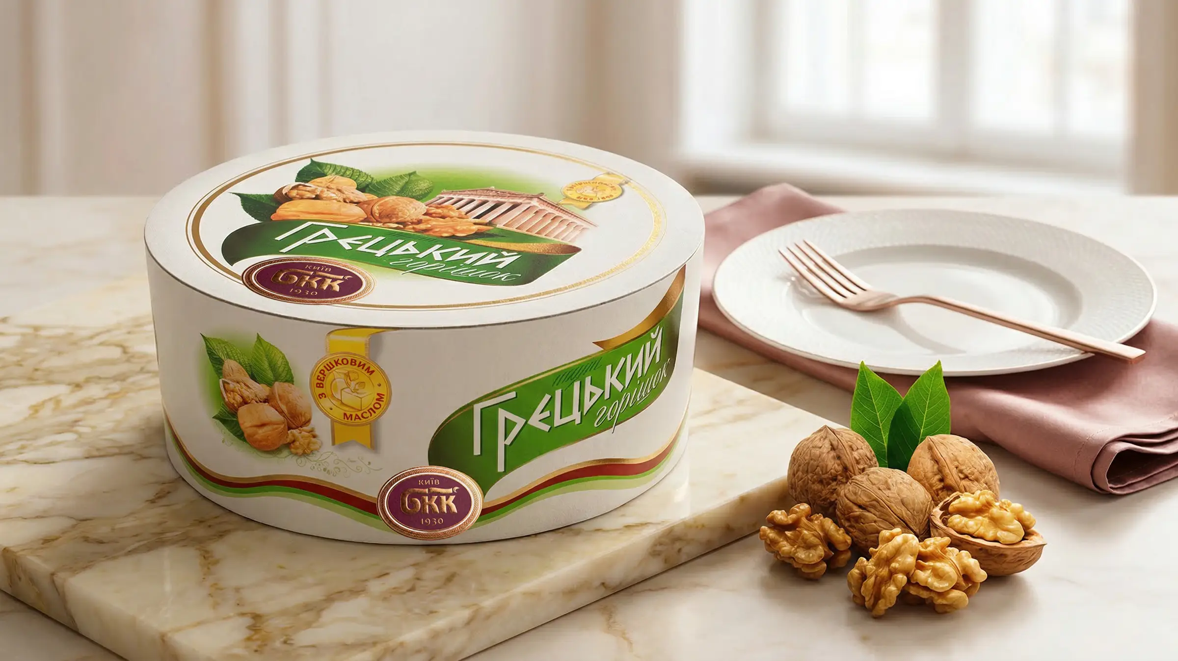 Стиль дизайна основной линейки отличается нарядностью и выразительностью и, в то же время, лаконизмом. Узнаваемость на полке высока за счет использования белого фона как основного в упаковке. Дизайн премиальной линейки БКК (несколько позиций «Грильяжный», «Киевский с фундуком») выполнен с применением фоновых паттернов и тиснения золотом, что очень сильно дистанцирует продукцию от конкурентов.