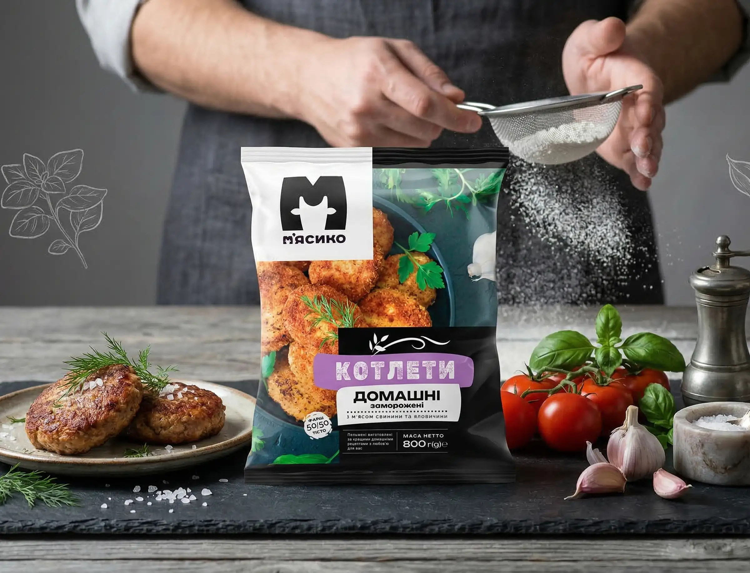 Брендинг, дизайн упаковки мясных полуфабрикатов М’ясико
