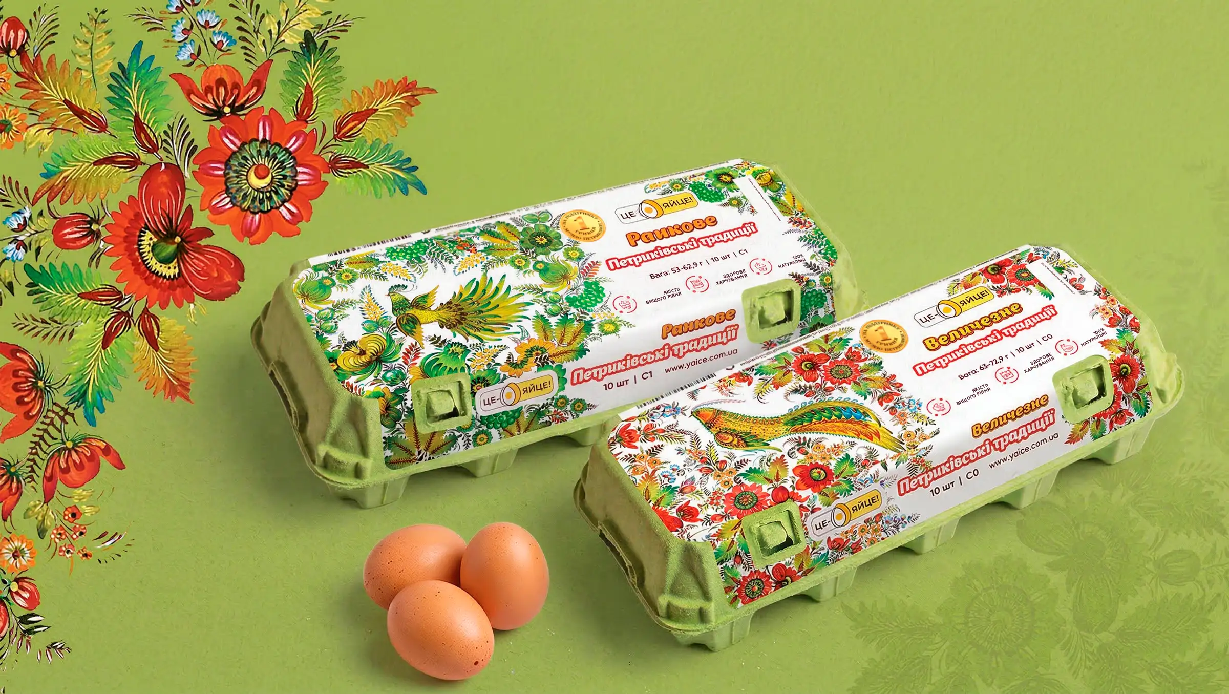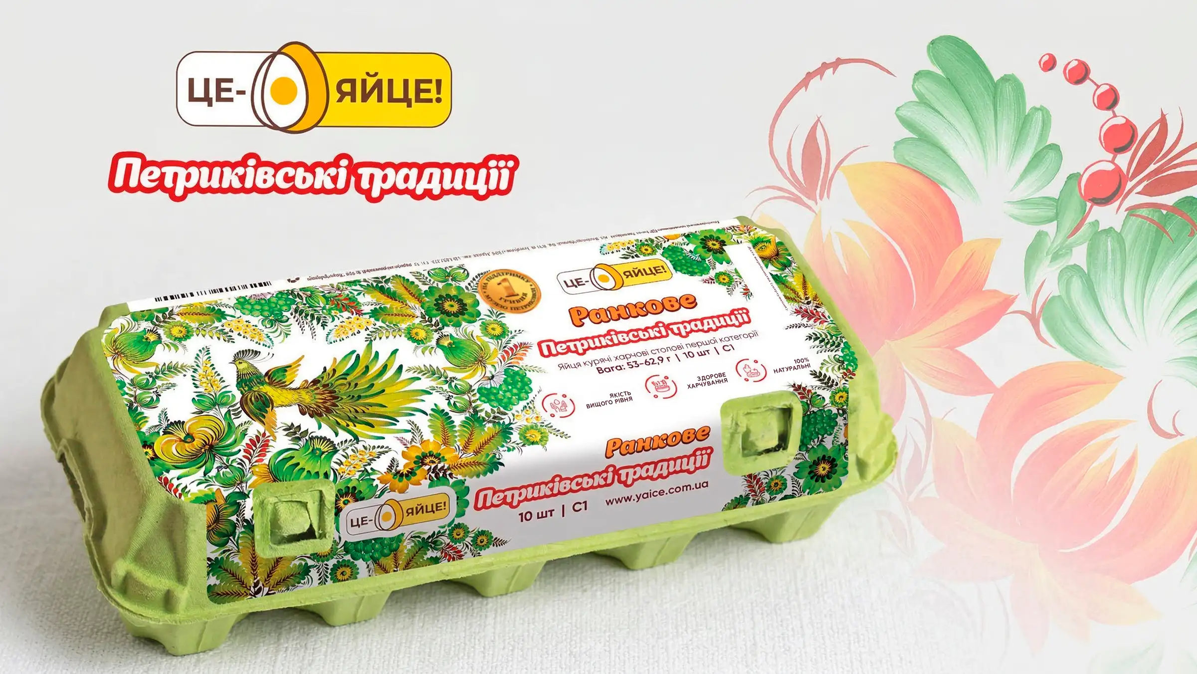 в 2021 г. вышел суббренд Це — Яйце! Петриковское, который разработан нашим агентством. Идея этого проекта — поддержать уникальный украинский Музей петриковской росписи. 1 грн. от продажи каждой пачки будет перечислена в фонд поддержки музея. Спасиально для ТМ Це — Яйце! художники Музея петриковской росписи создали огигинальные картикы с курочками в технике петриковской росписи, которые и стали главными героями нашей упаковки.