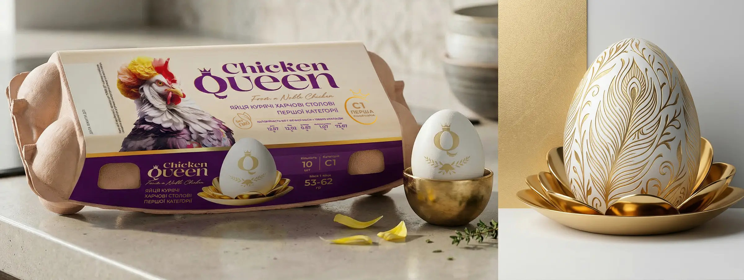 Chicken Queen. Нейминг, брендинг, дизайн упаковки премиальных яиц