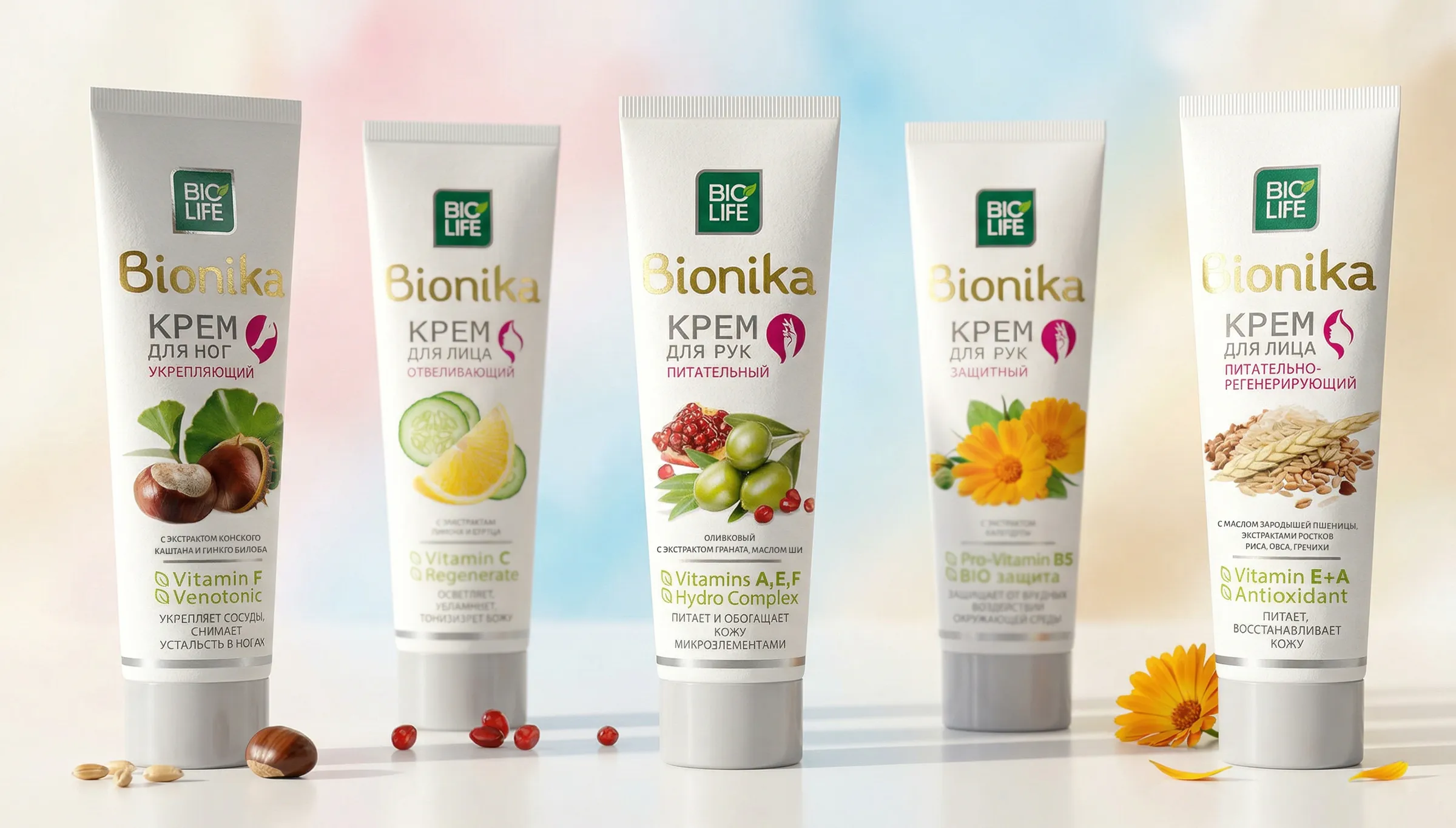 ТМ BIOLIFE принадлежит узбекско-британскому совместному предприятию BIOLINE-KOSMETIKS — крупному производителю косметических средств для стран СНГ. В портфель брендов компании входят такие торговые марки, как краски для волос среднего ценового Life Color, лоя которых мы разработали брендинг, нейминг и дизайн упаковки, краски для волос низкого ценового сегмента VIVA ton и ТМ кремов «Аптекарь».