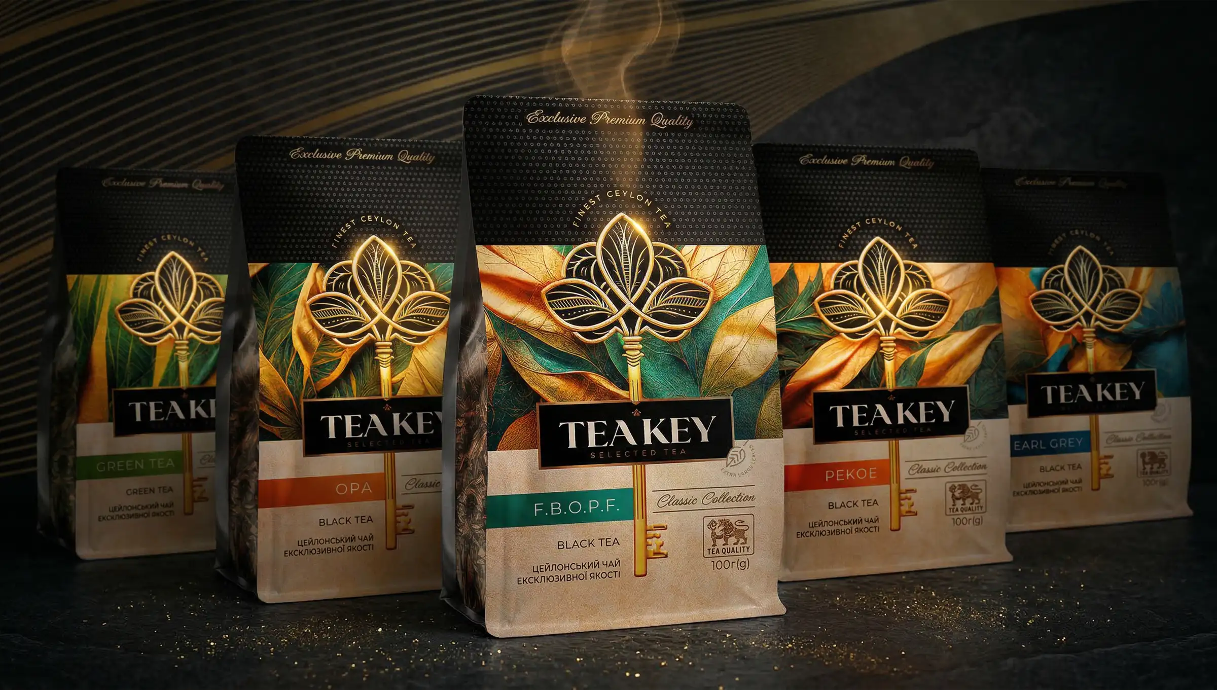 Имея на руках такую сильную концепцию, наша дизайн-команда столкнулась с задачей. Как визуализировать «ключ» и «ясность»? Мы не стали прятать нашу метафору. Мы сделали ее героем. Центральным элементом каждой пачки стала крупная, стильная, графичная иллюстрация ключа. Этот дизайн упаковки чая невозможно было не заметить.