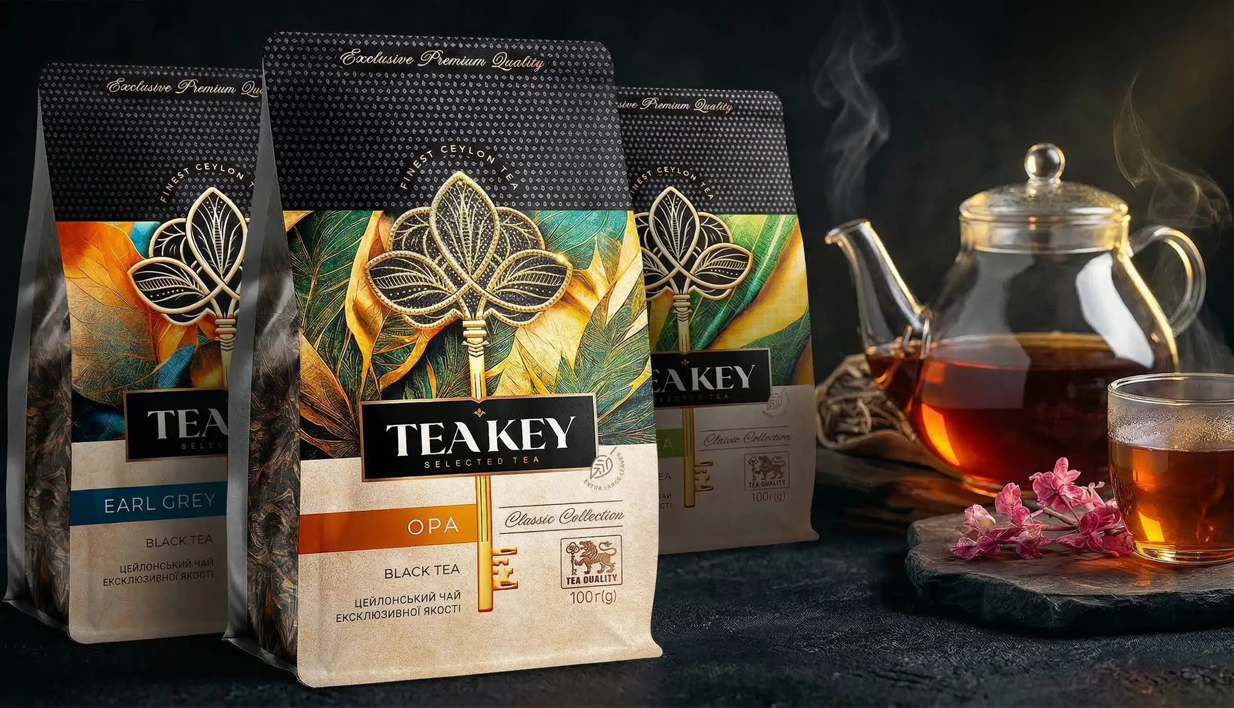 • Создание мощного бренд-блока. В ритейле это называется «эффектом стены». Когда пачки «Tea Key» стоят рядом, они создают единую, ритмичную «белую стену» с яркими, цветными «ключами». Это выглядит как дизайнерская инсталляция, которую невозможно проигнорировать.