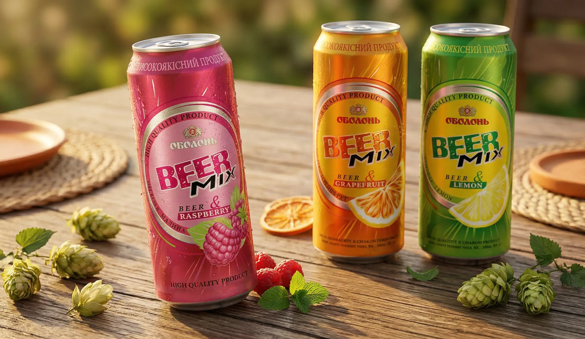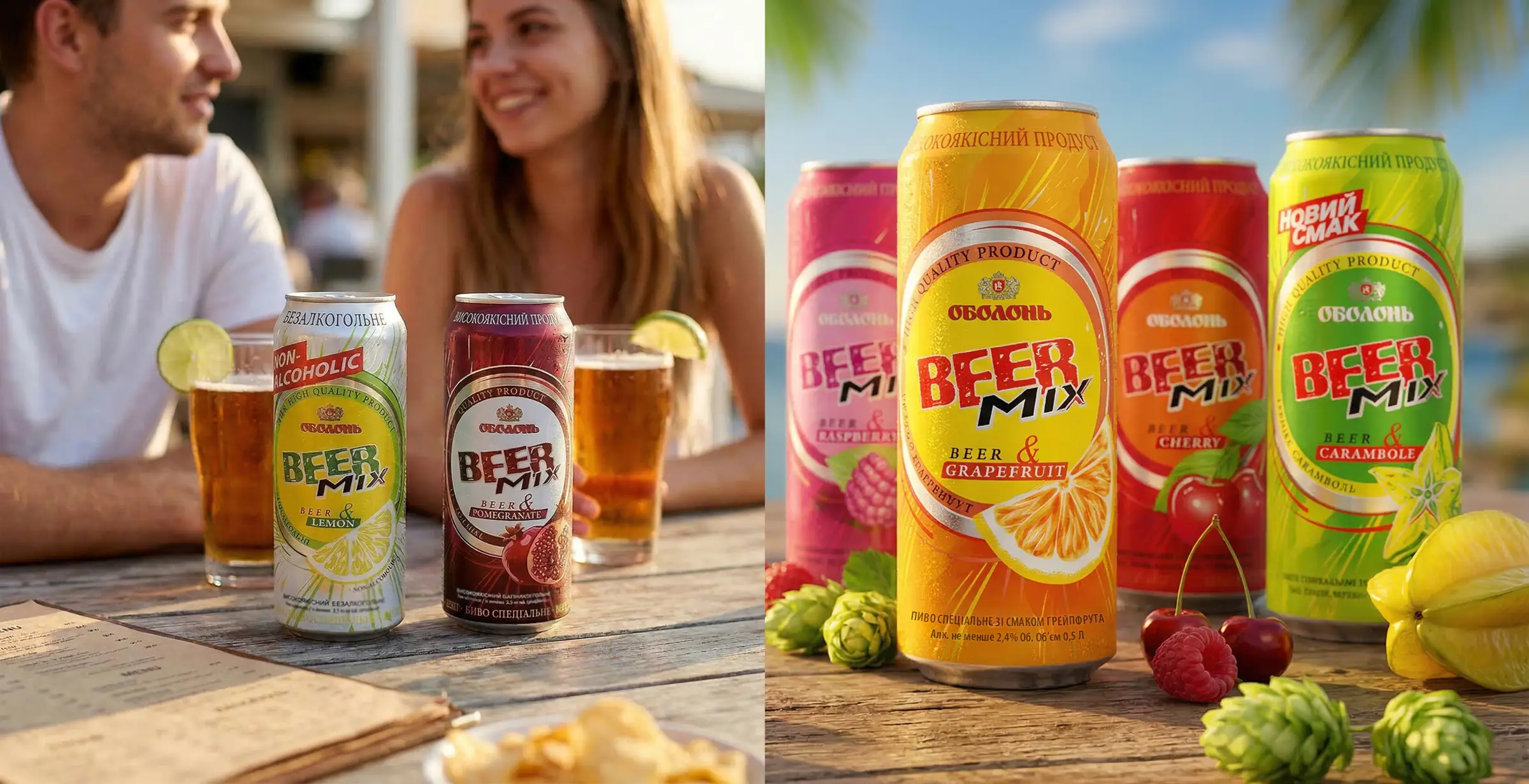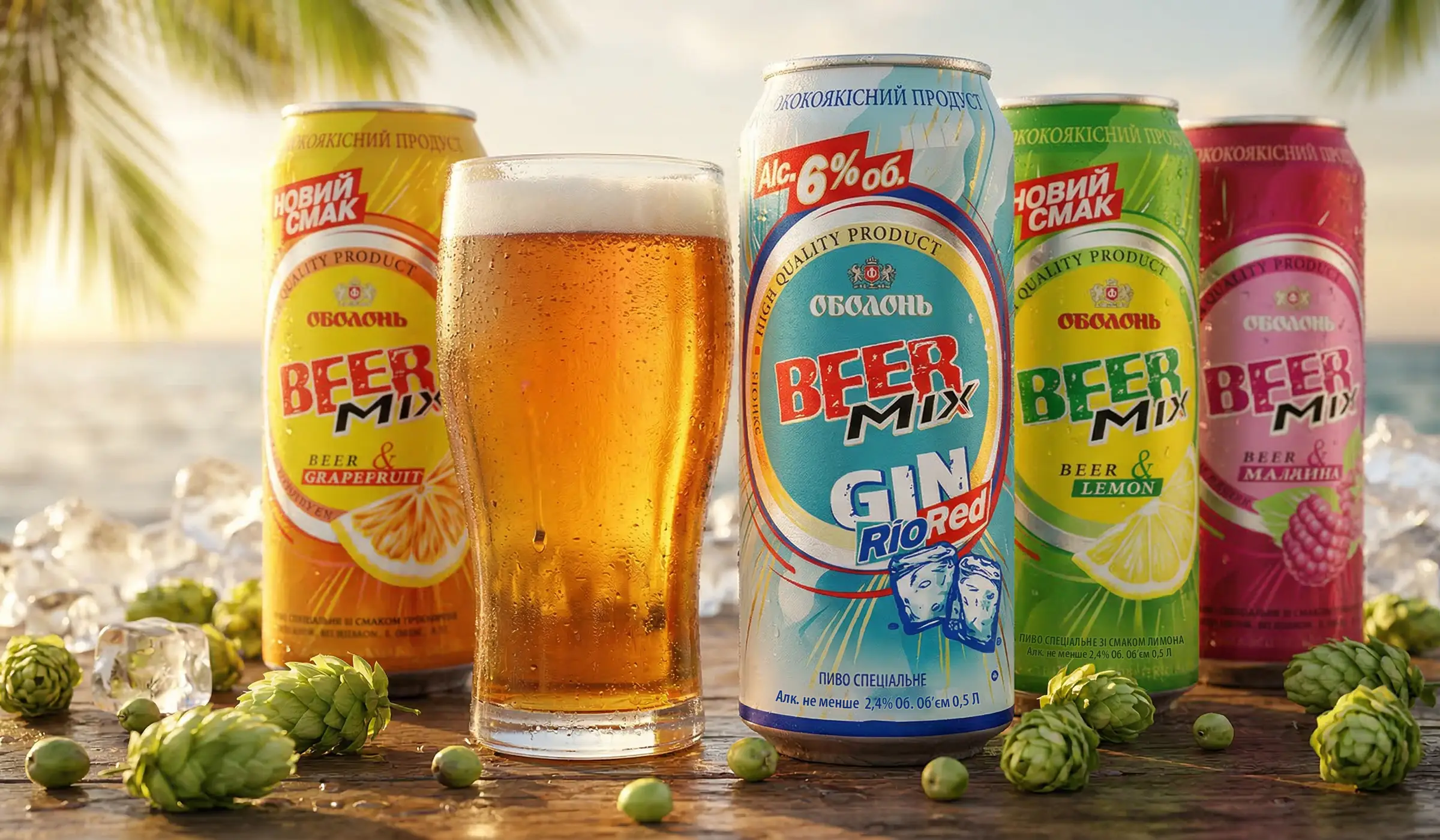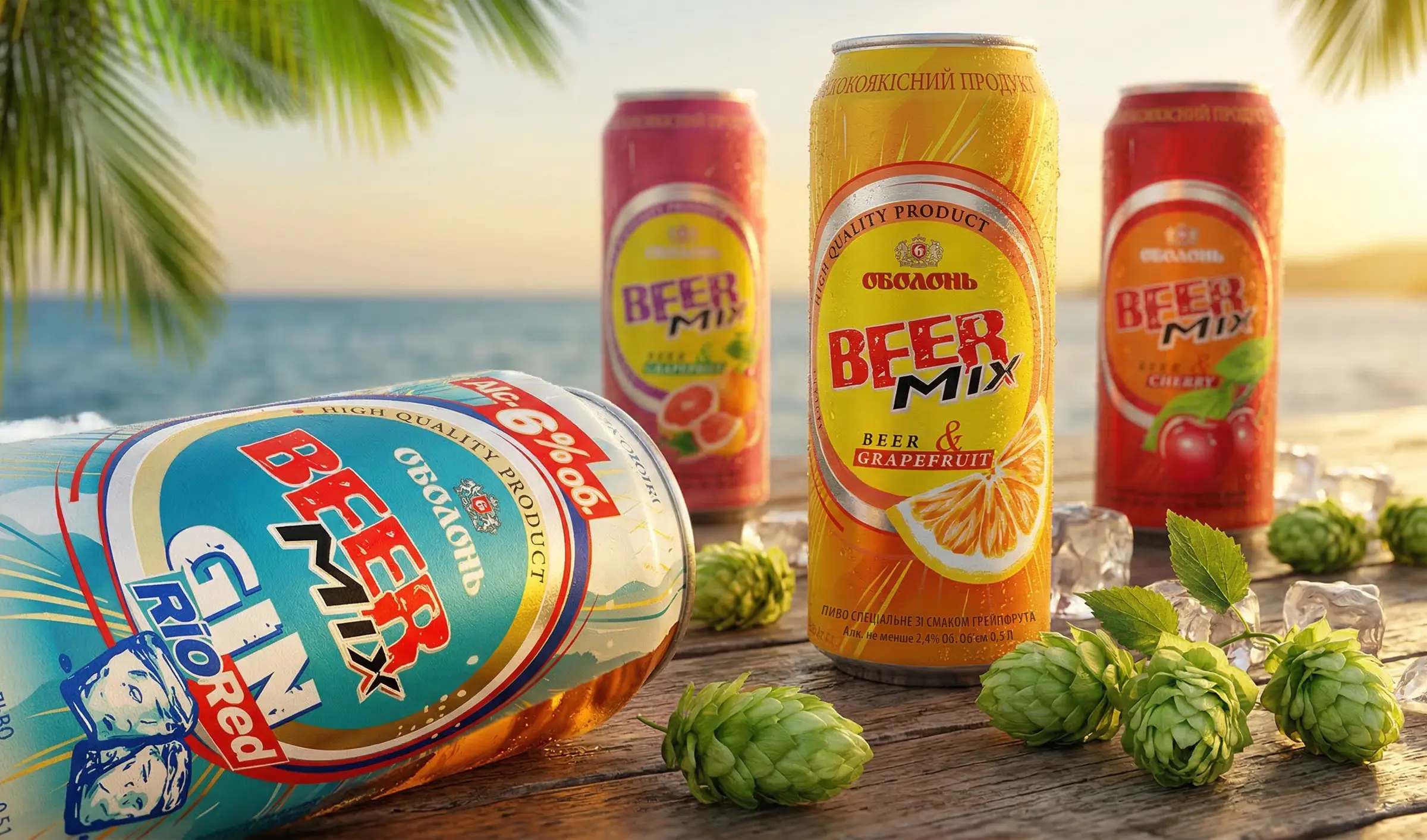 Следующий плановый рестайлинг продуктовой линейки BeerMix компания «Оболонь» через 3 года также заказала у компании GBS, однако уже без проведения тендера. Ассортимент BeerMix был расширен до 7 позиций: BeerMix Апельсин, BeerMix Лимон, BeerMix Малина, BeerMix Кола, BeerMix Вишня. Невесомая, узкая, изящная банка, вмещающая феерическое содержимое, — вот концепция обновленного BeerMix.