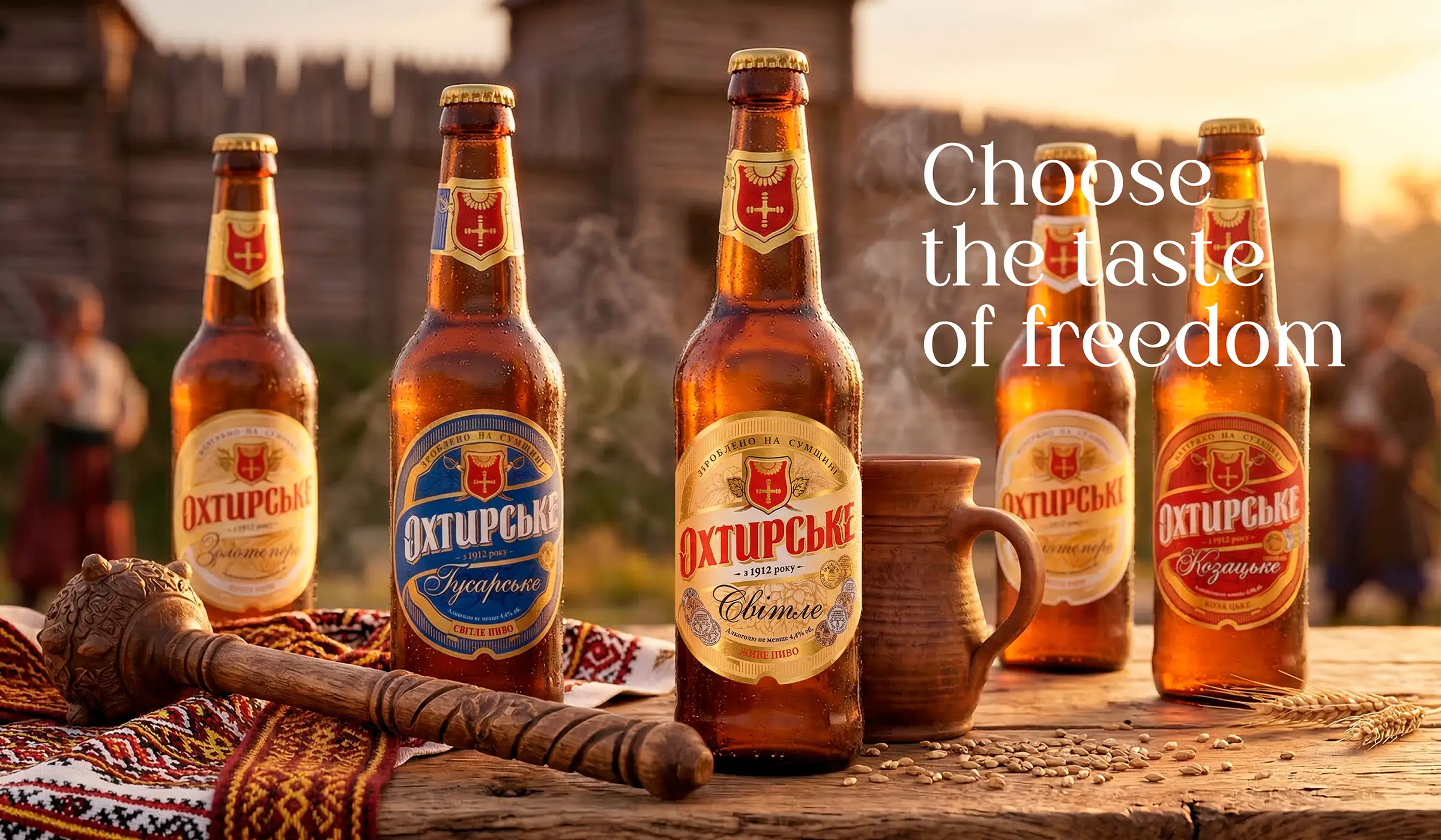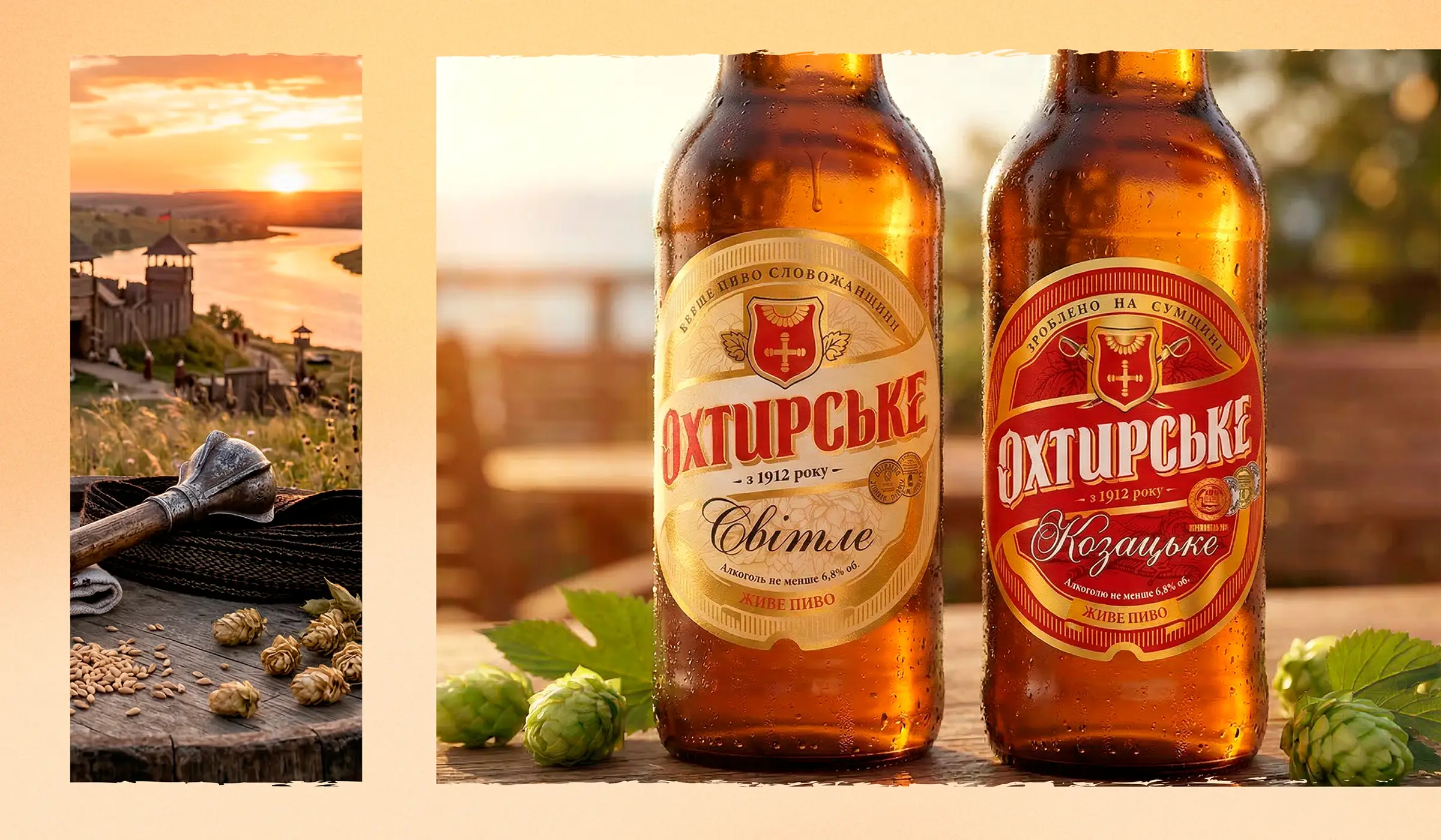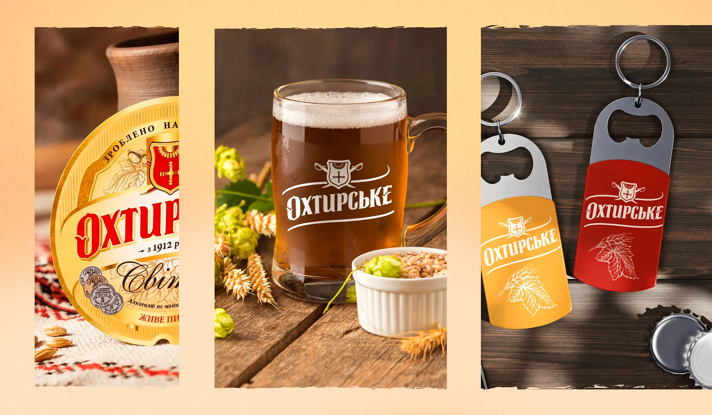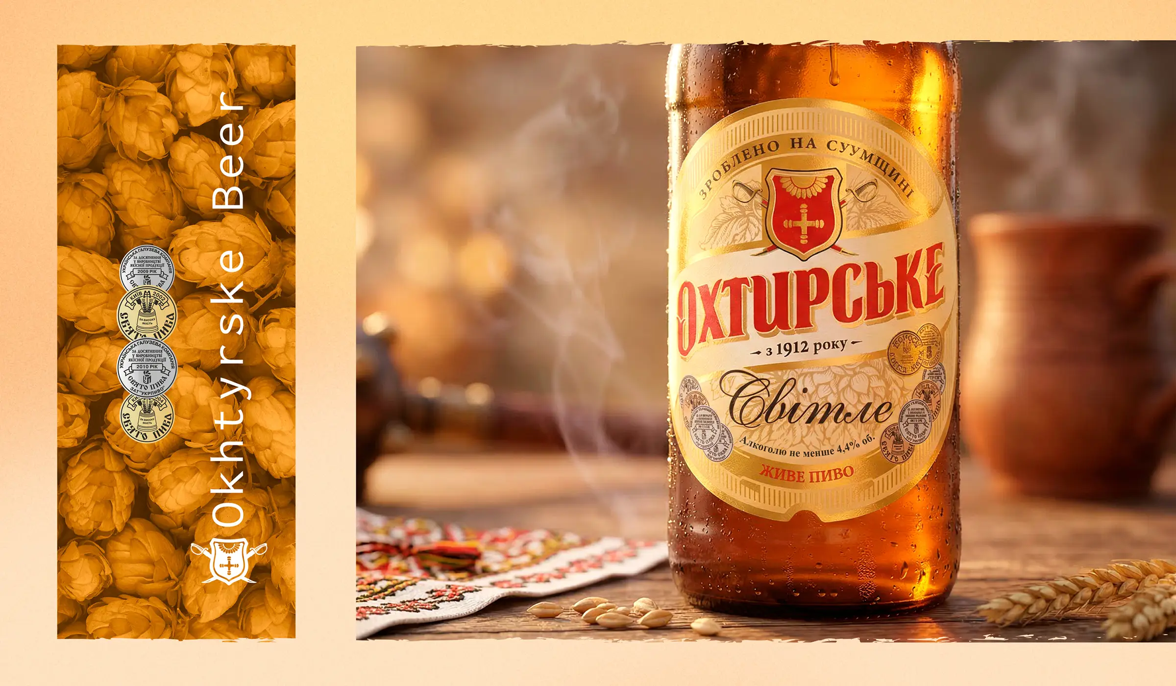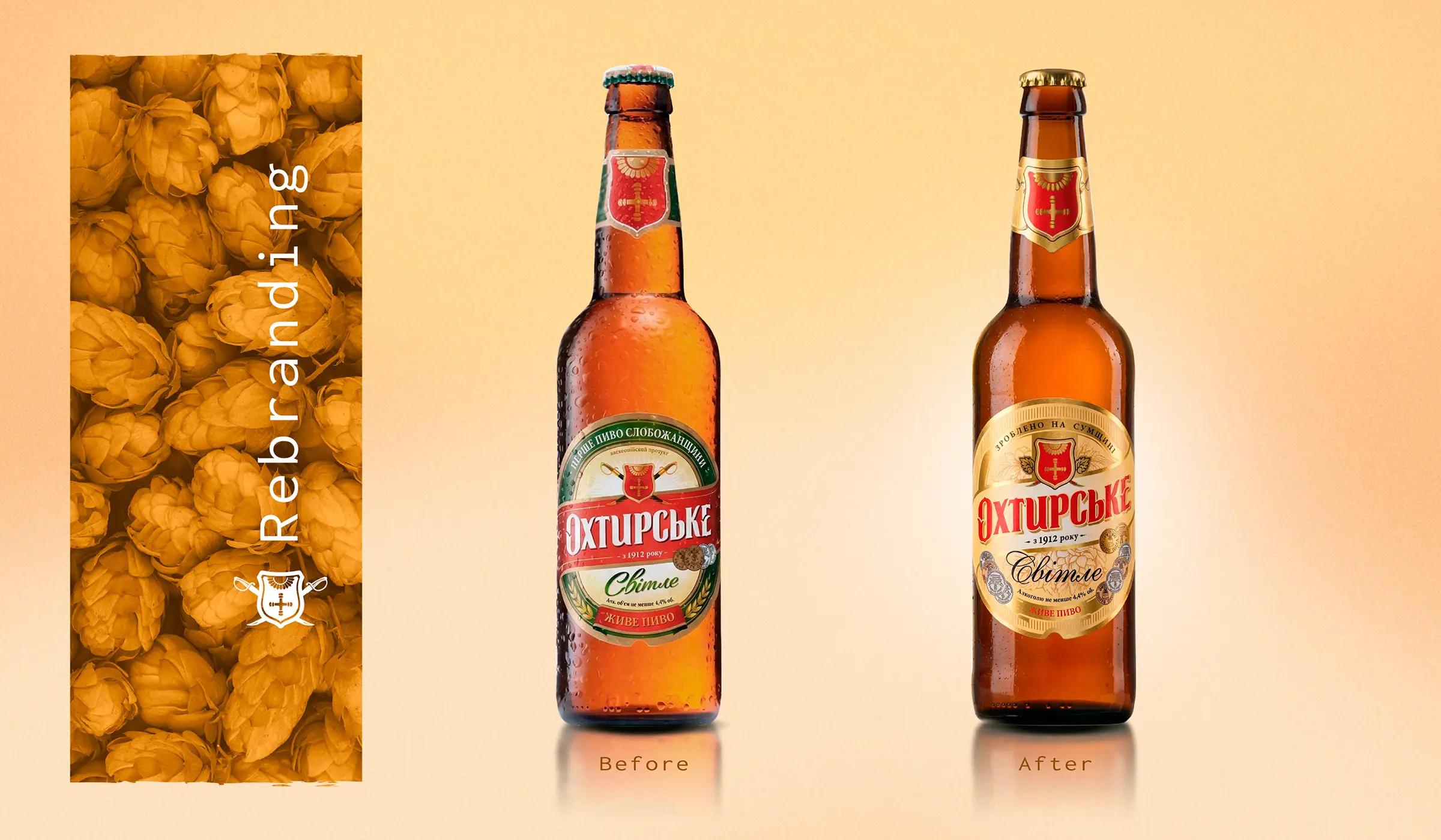 Перед нами была поставлена задача создания нового бренда: требовалось разработать brand story, креативную платформу для рекламной кампании, создать упаковки и оформление бренда Пиво «Охтырское», принадлежащего корпорации «Оболонь». Мы создали дизайны упаковки для: пиво ”Охтырское светлое”, пиво ”Охтырское казацкое”, пиво ”Охтырское крафтовое светлое”, пиво ”Охтырское крафтовое жигулёвское”, питьевая артезианская вода ”Охтырская”. Продукция в нашем дизайне популярна более 7 лет.