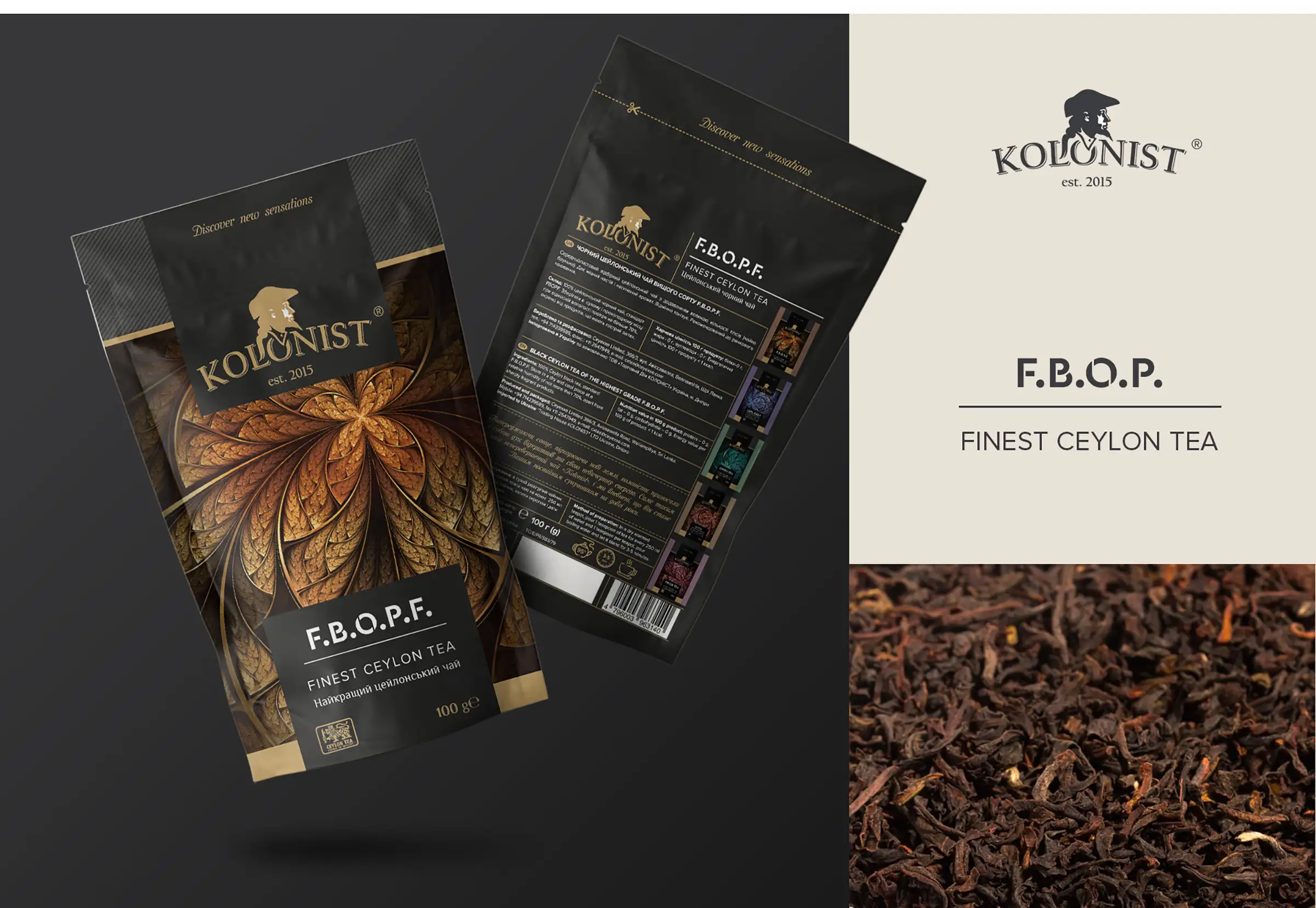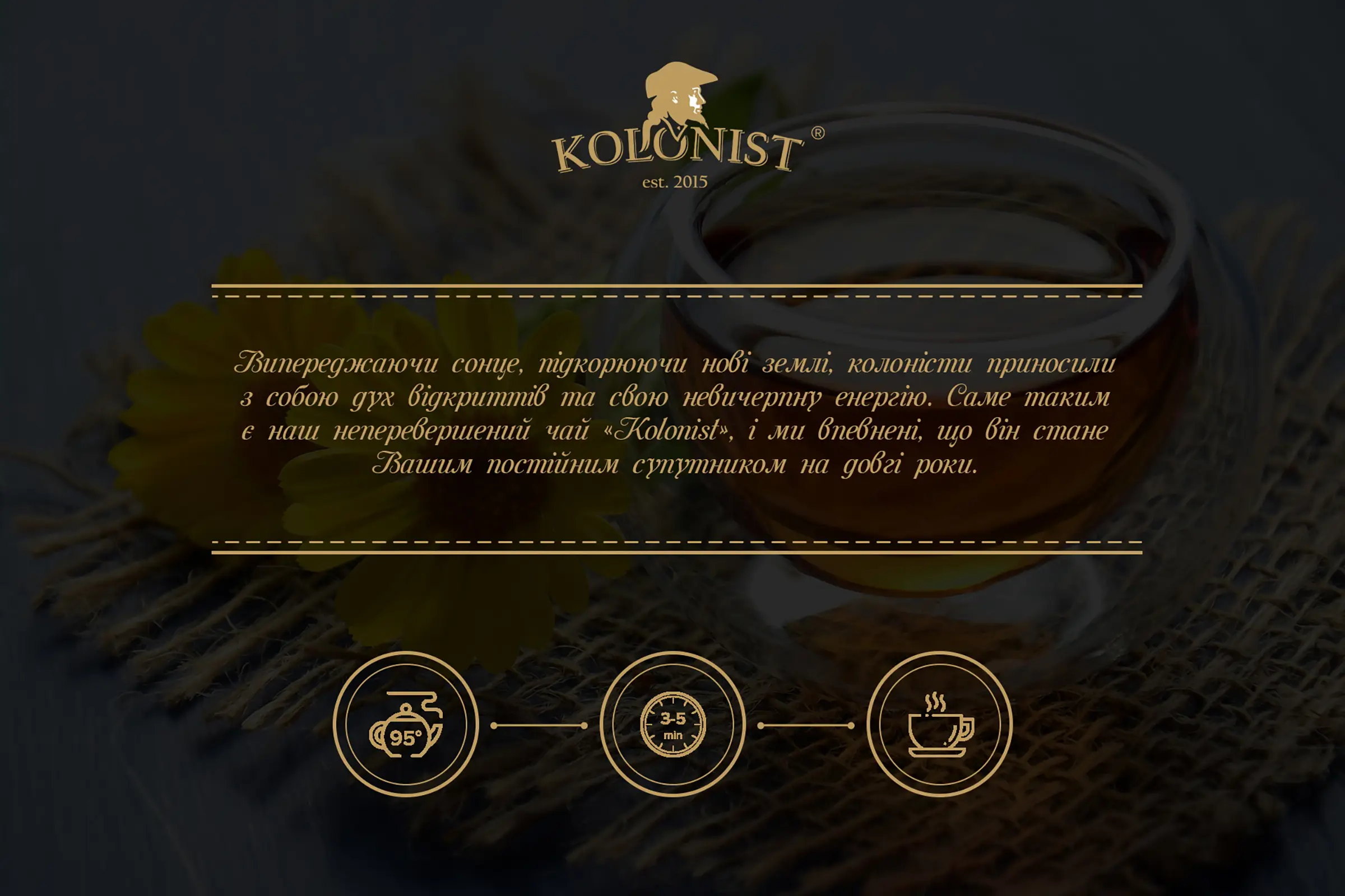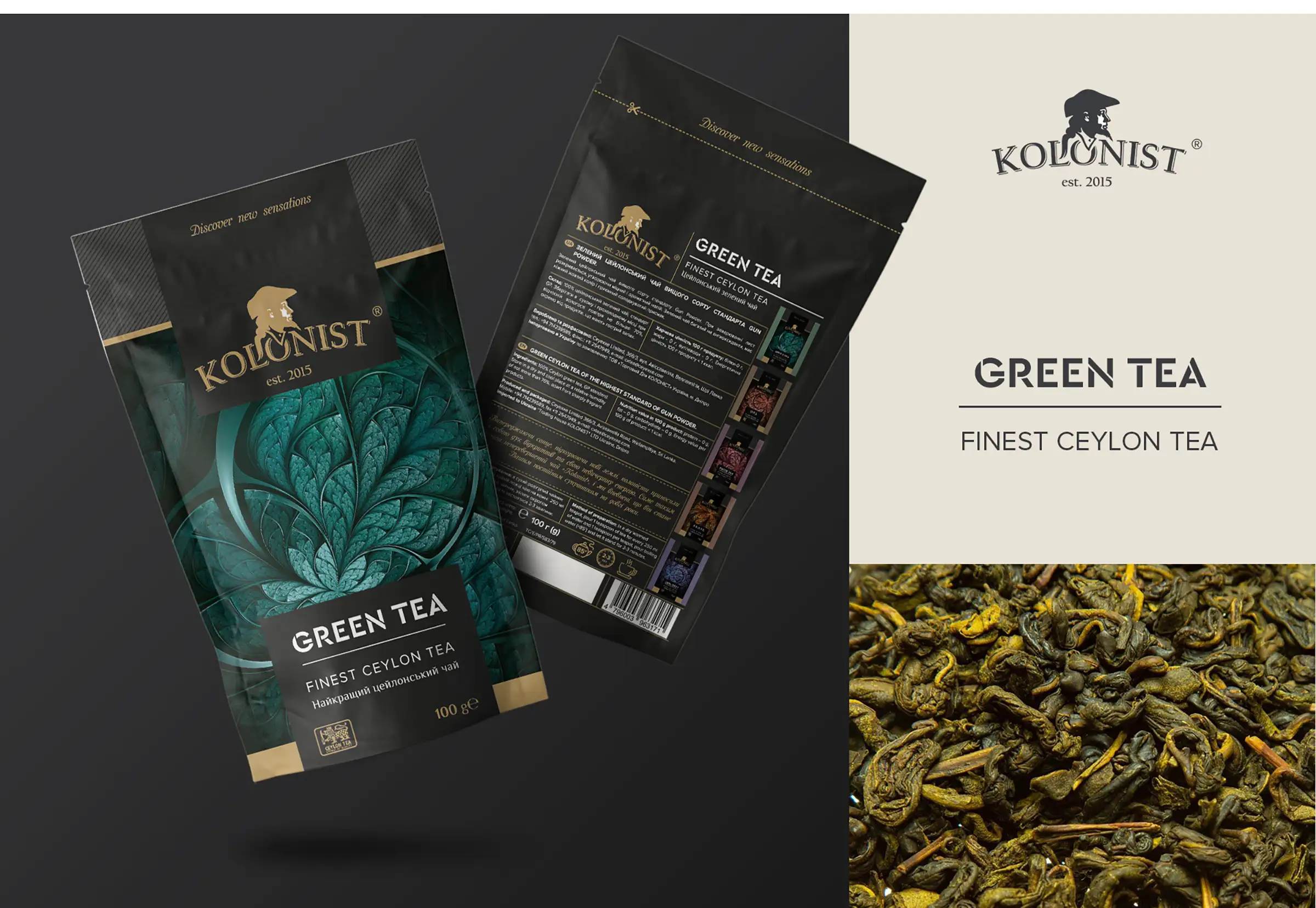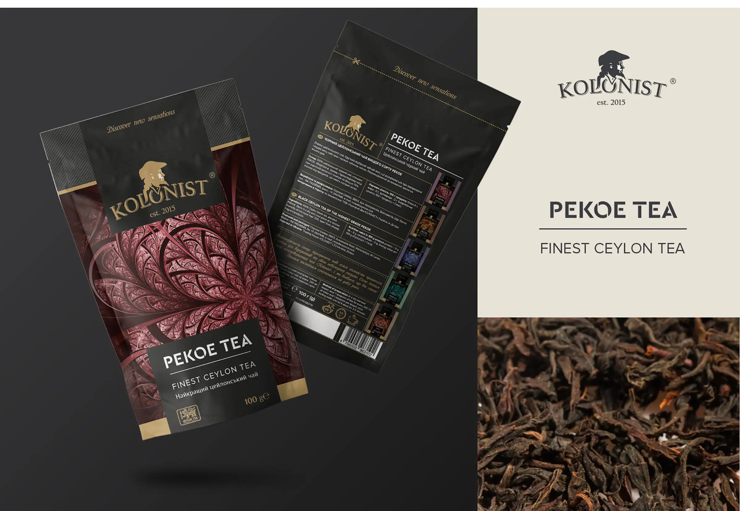 Тип упаковки, примененный для нового бренда чая Kolonist, не свойственен в принципе чайному сегменту. Мы отказались от использования традиционных картонных или жестяных коробок в пользу удобного пакета с zip lock застежкой, позволяющего сберечь герметичность открытой упаковки. Важным для выбора данного типа упаковки была возможность применить прозрачные зоны, через которые потребитель при покупке может видеть высокое качество чайного листа.
