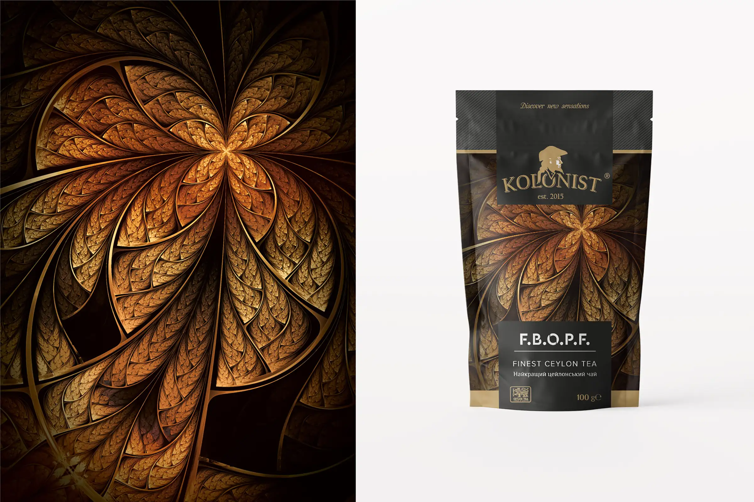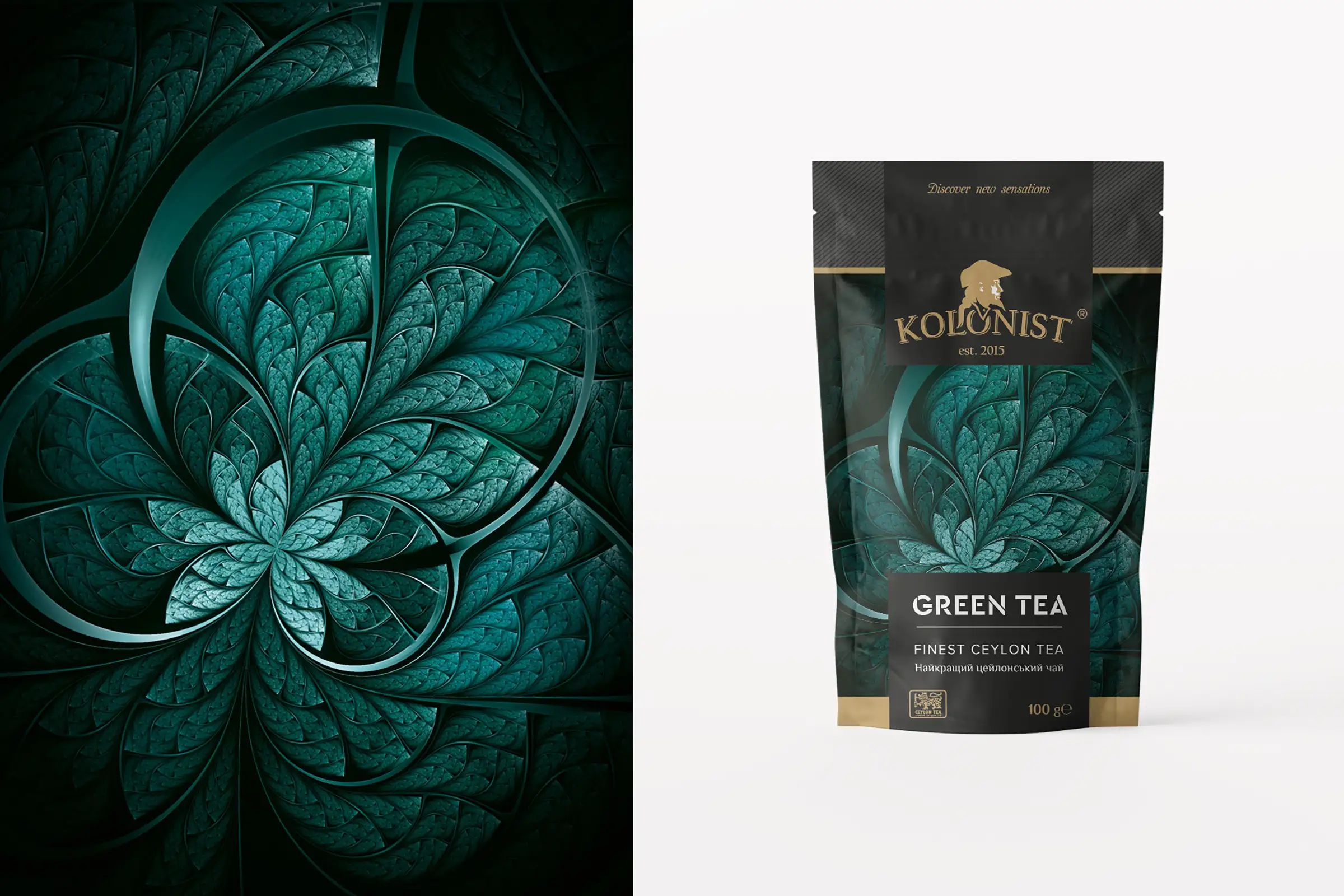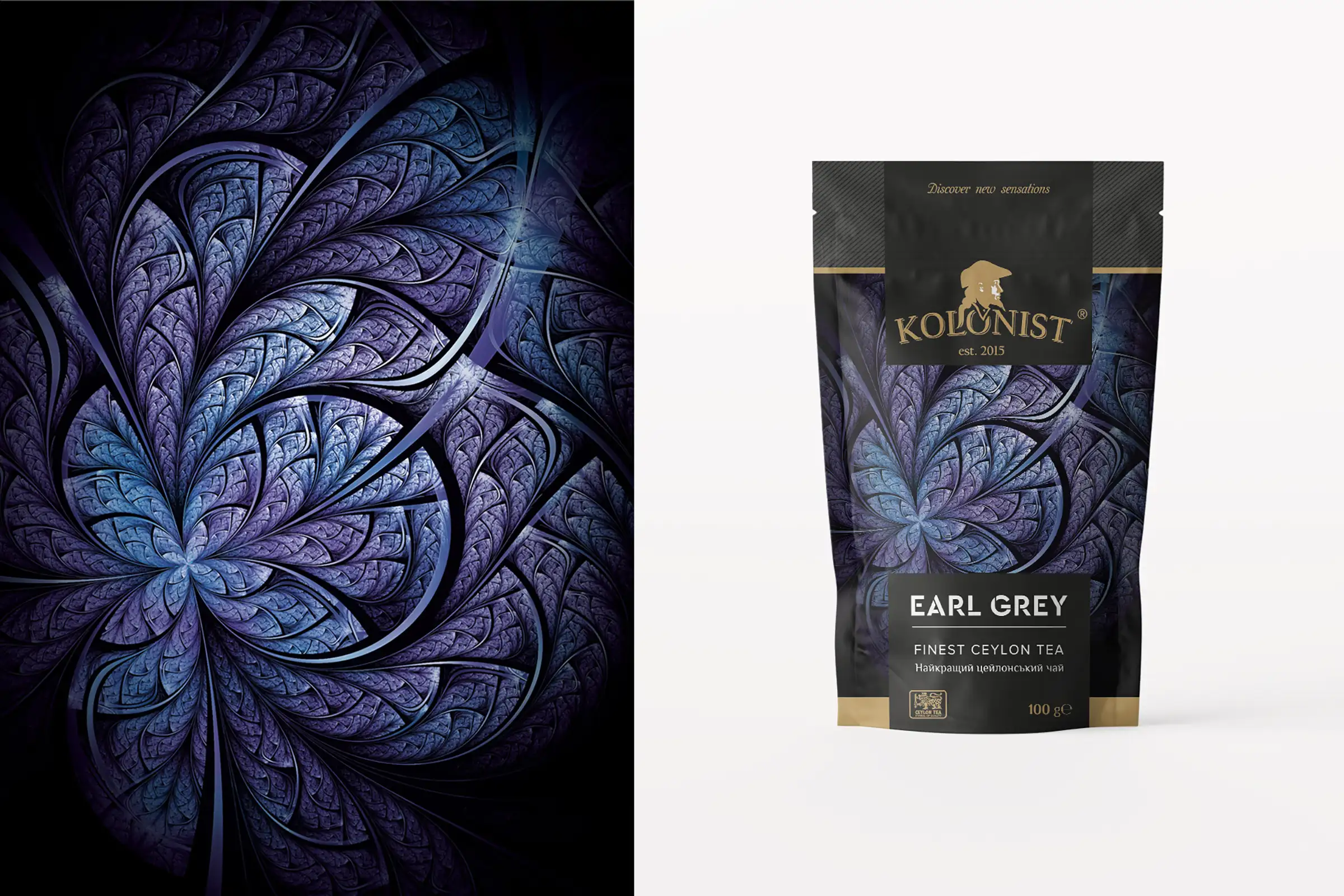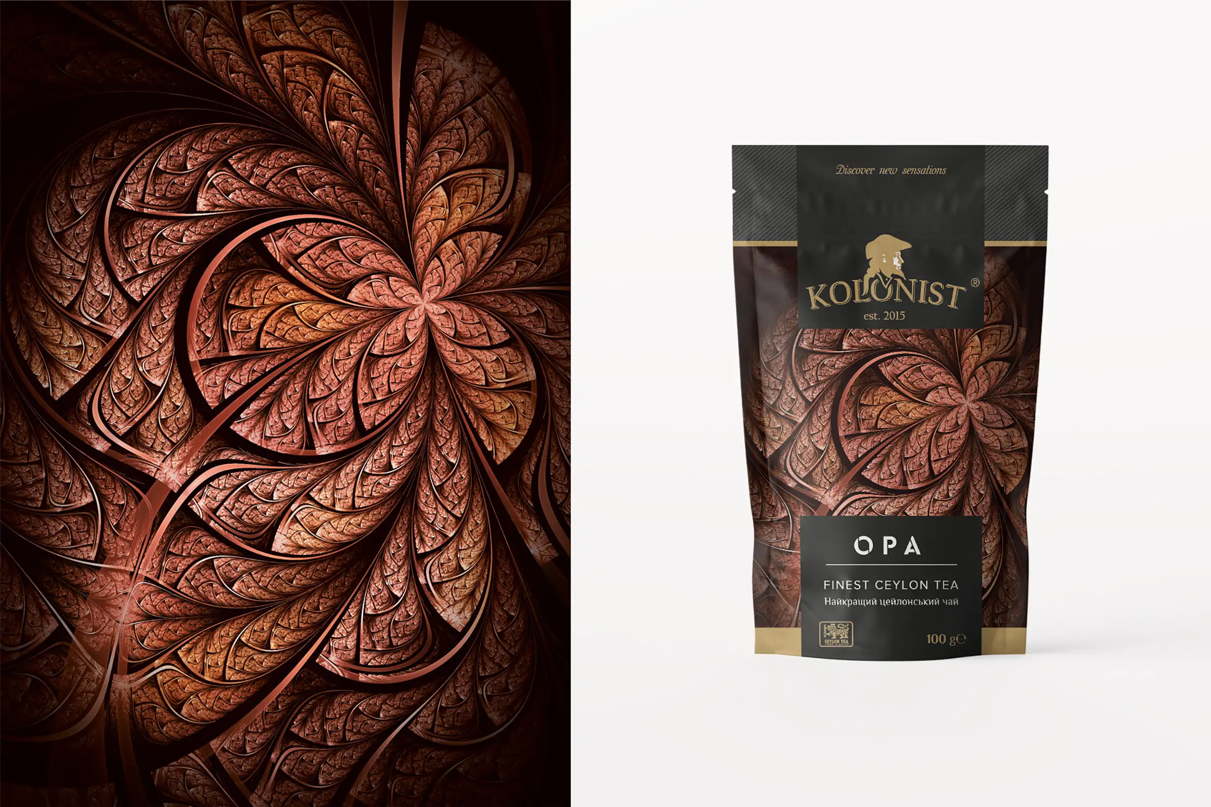 Идея передать раскрывающиеся вкусы сортов чая ТМ Kolonist с помощью изображения фракталов дала бренду не только базис позиционирования и отстройки от конкурентов, но и яркое, нестандартное оформление упаковки. Дизайн упаковки получился по-настоящему уникальным, непохожим ни на какие другие.