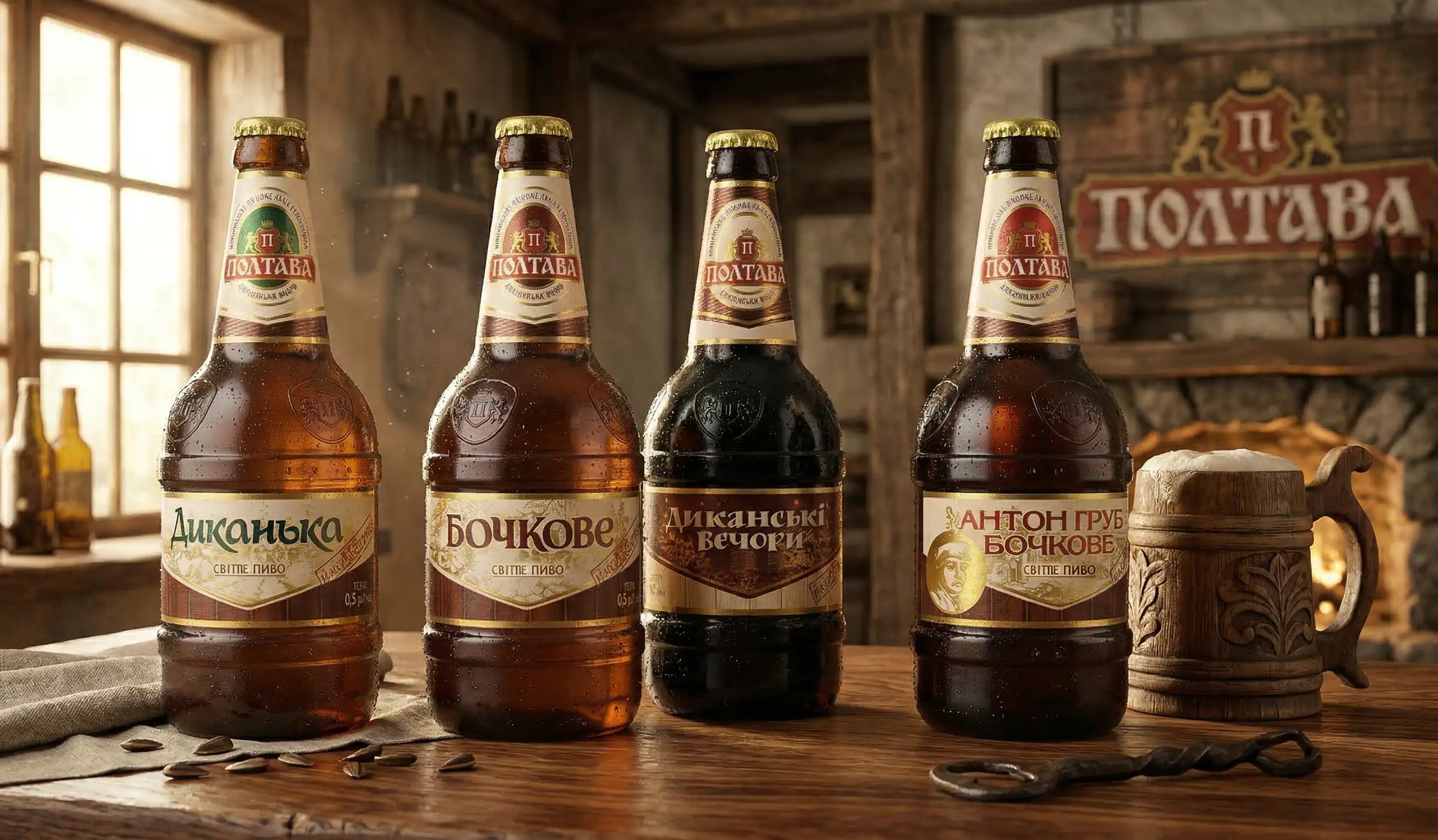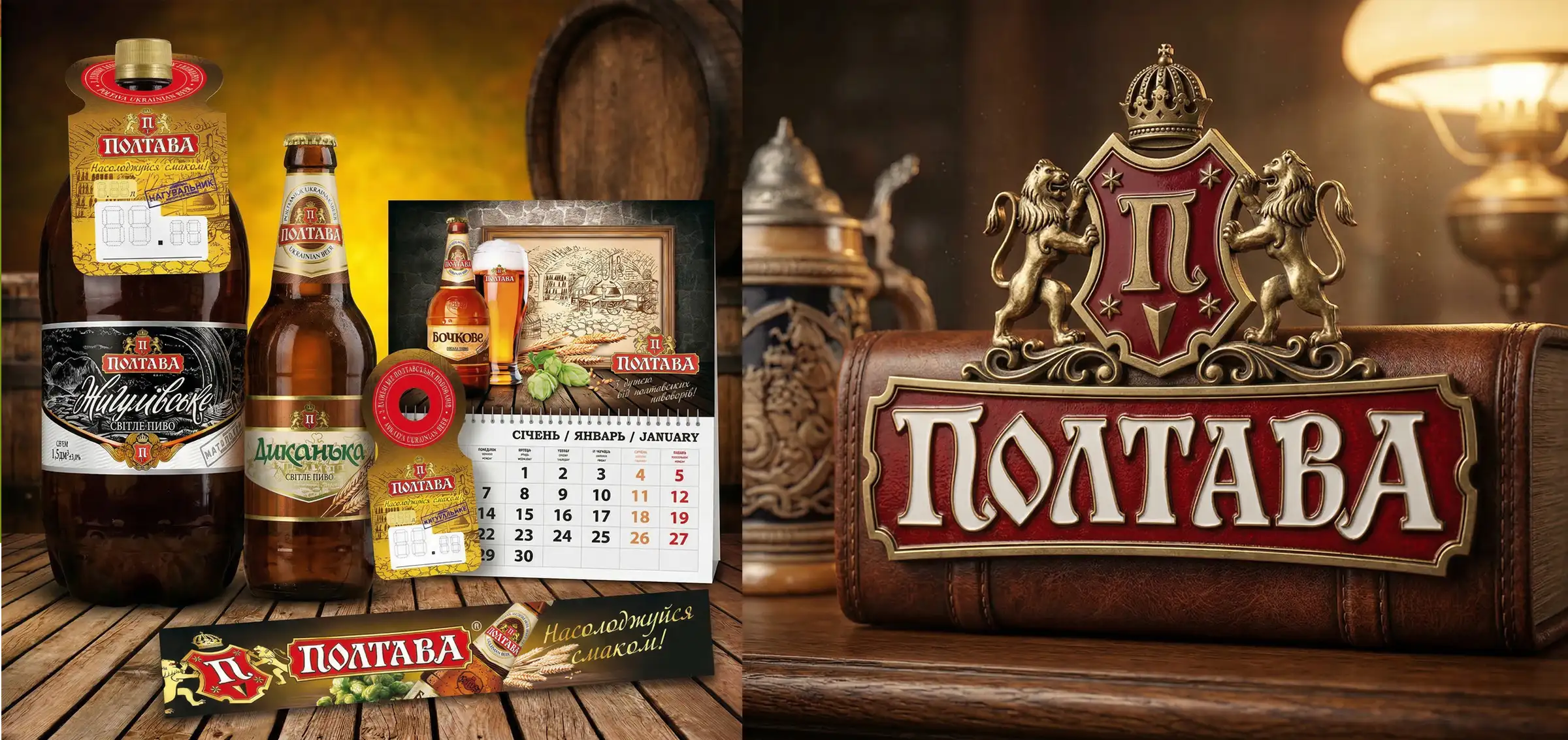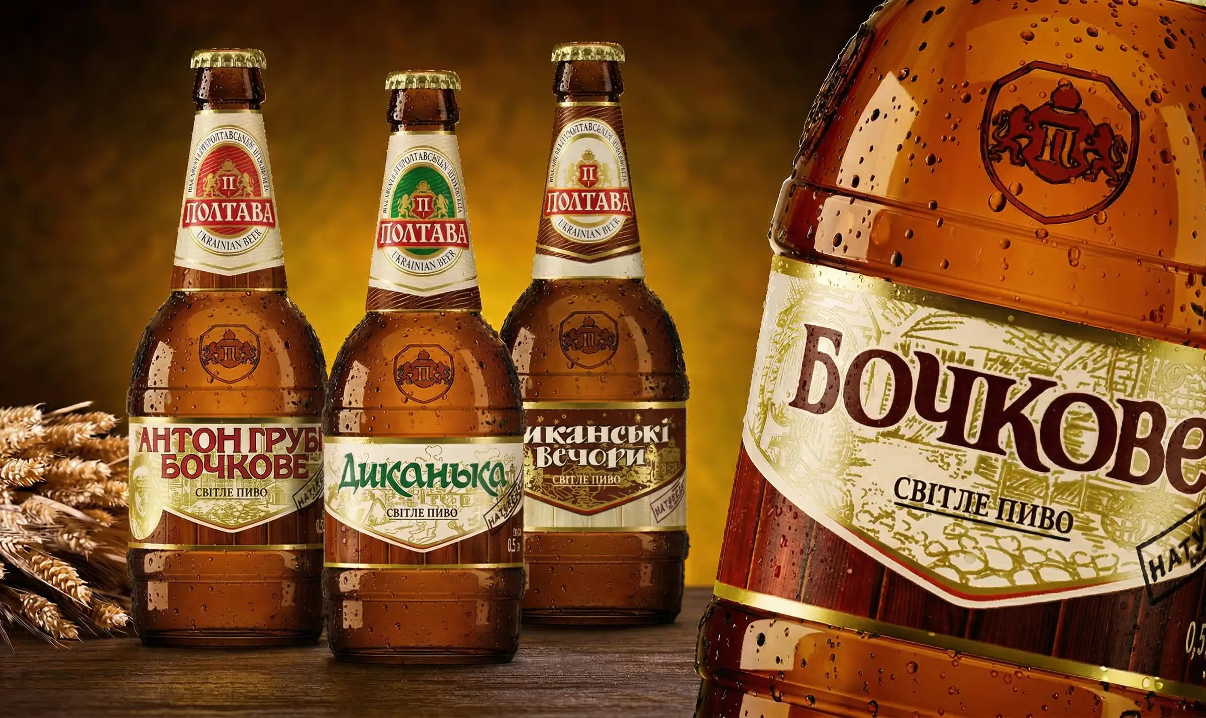 Чтобы подчеркнуть традиционно высокое качество и оригинальный вкус продукции «Полтава Пиво», при разработке дизайна бутылки в основу концепции мы заложили образ символической пивной бочки. При одном лишь взгляде на обновленную бутылку возникает убежденность, что это — добротное настоящее пиво для истинных ценителей. Вторым этапом проекта стало создание новой концепции этикетки и развертывание ассортиментной линейки. Следующим этапом ребрендинга стала разработка рекламных материалов.